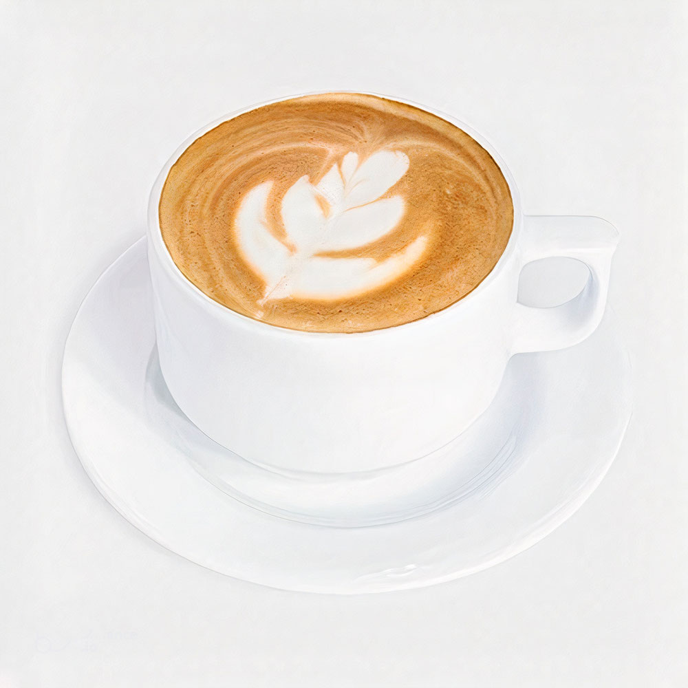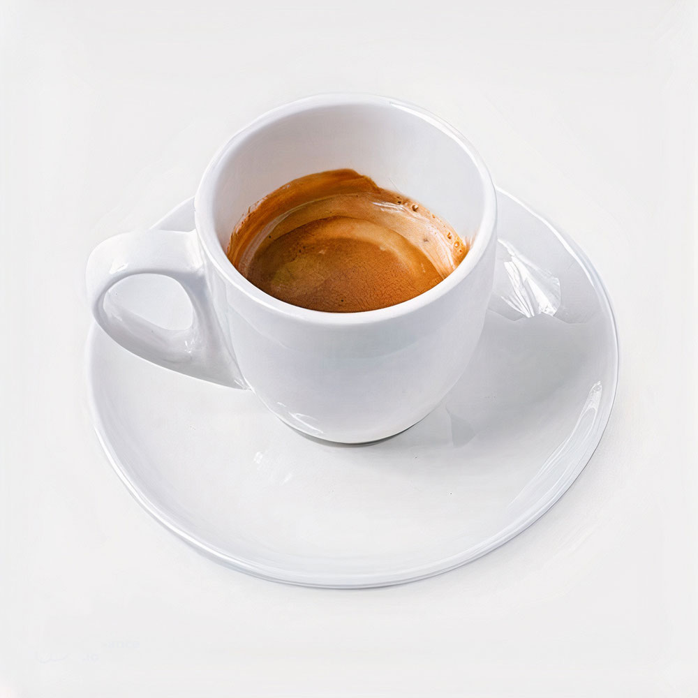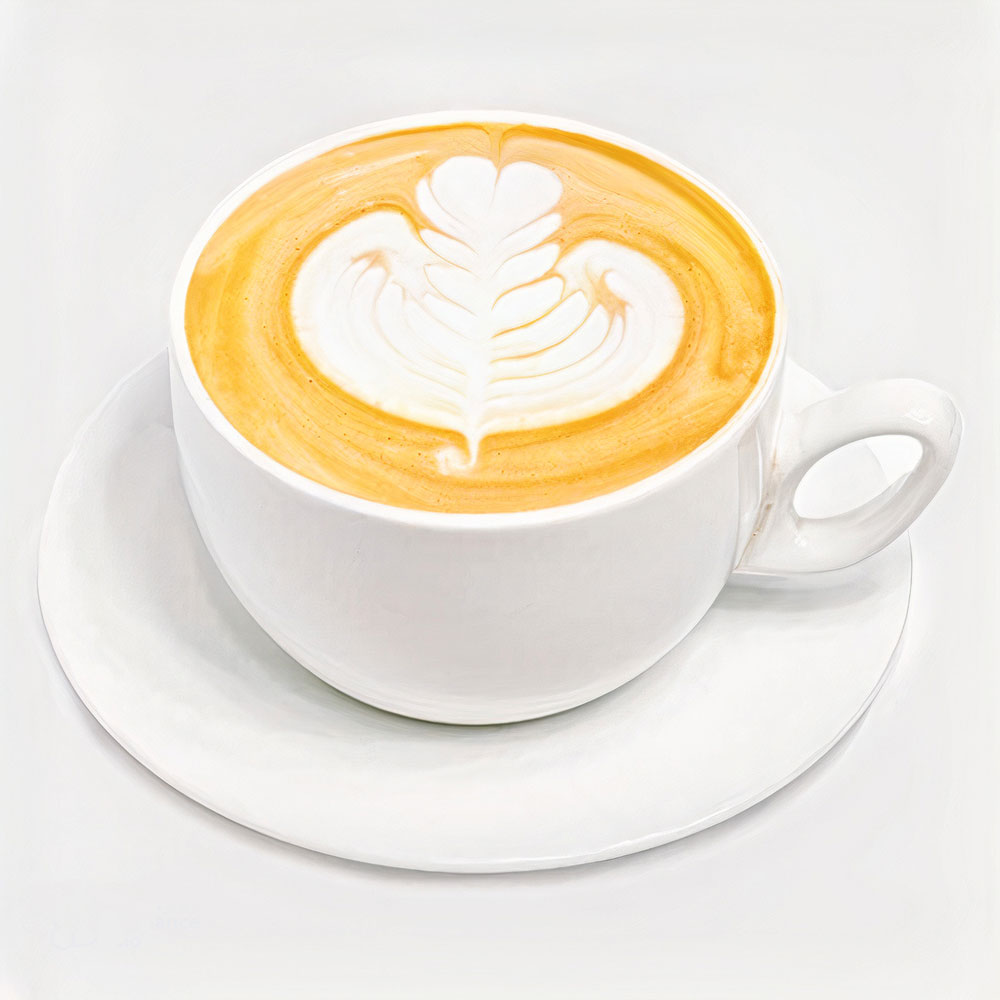 ۱۸۰ میلی لیتر، ۲ شات اسپرسو، ۷۰% قهوه عربیکا و ۳۰% قهوه روبوستا، شیر، فوم شیر، به همراه یک عدد کوکی