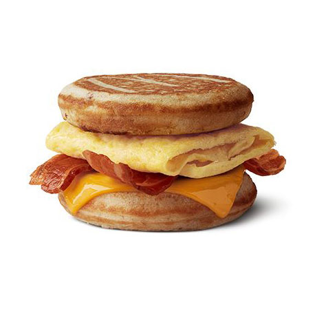 یک عدد تخم مرغ ، بیکن گریل شده ، یک ورق پنیر چدار ، نان گرد اسلایدری