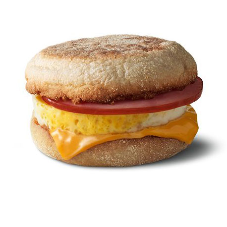دو عدد تخم مرغ ، بیکن گریل شده ، یک ورق پنیر چدار ، نان گرد اسلایدری